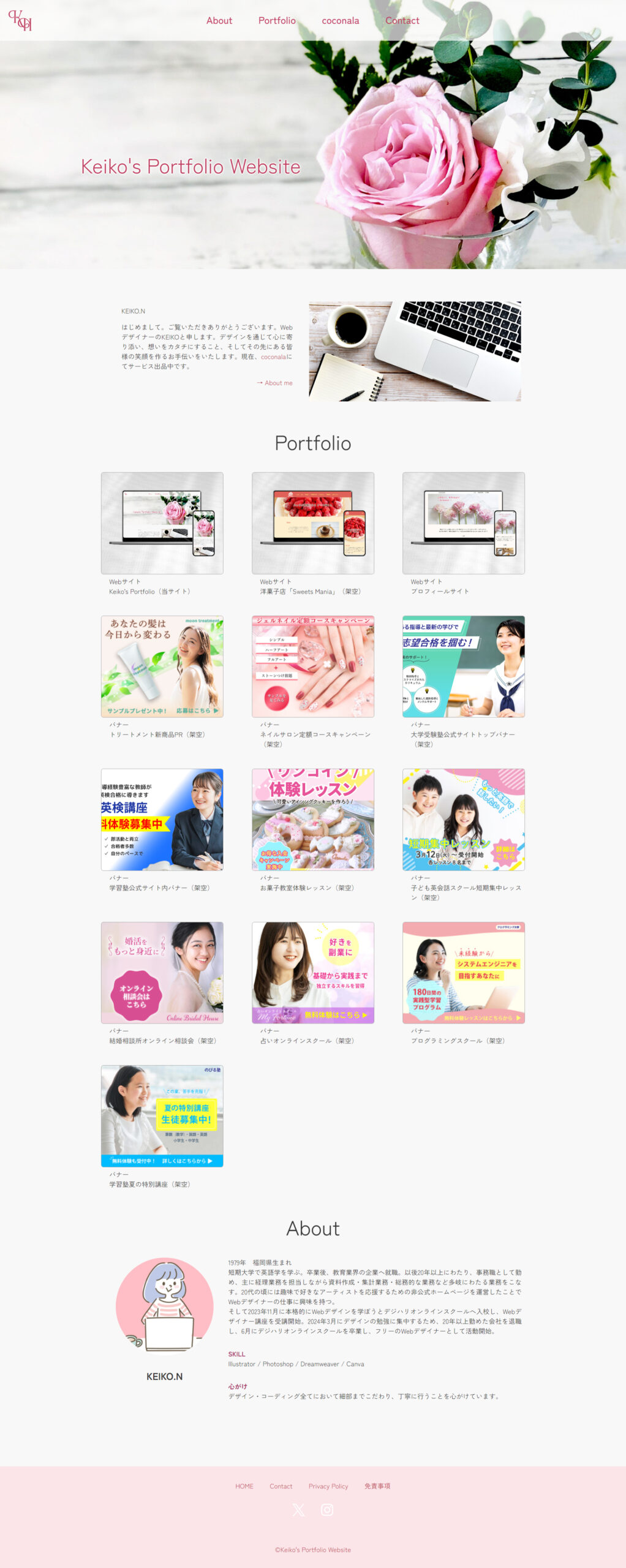 WordPressを使用してノーコードでの制作を行うことも可能でしたが、スクールで習得したスキルをアウトプットするためにあえてコーディングを行いました。 シンプルで分かりやすいサイト設計を意識しました。今後はJQueryを使用して動きをつけるなどしながらスキルアップしていきたいです。